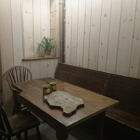 that we would use beadboard to create a seating area that felt like the settles in the pub